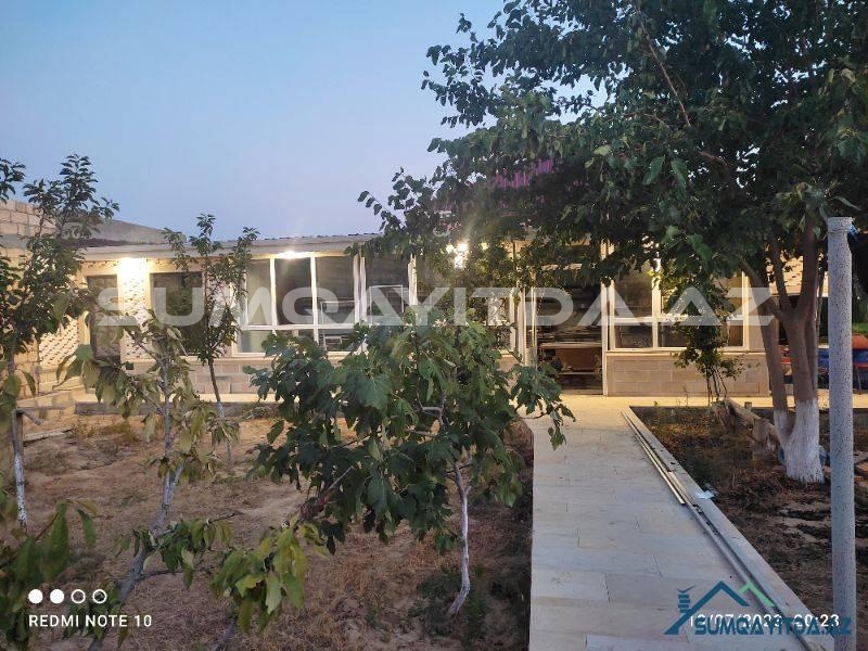 Təcili!6 sotun içində yeni tikilib təmir olunmuş bağ evi satılır.Həyətində meyvə ağacları, su çəni, əlavə 1 otaq, yay mətbəxi üçün tikili, əl damı, əlavə sanuzeli var.Qaz,su, işıq daimidir.Kombi,internet,telefon xətti çəkilib.Kolidor və hamam isti poldur.Evin içinde elave padvalı var.Butun heyet aglaydır.Dayanacağa 70 m məsafede havası təmiz sakit ərazidə yerləşir.Bəzi əşyalar qalacaq.