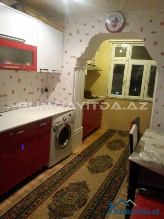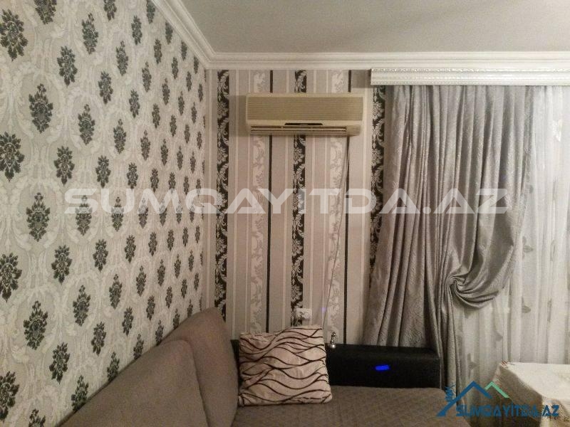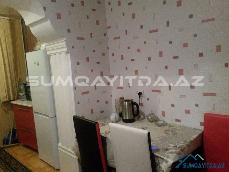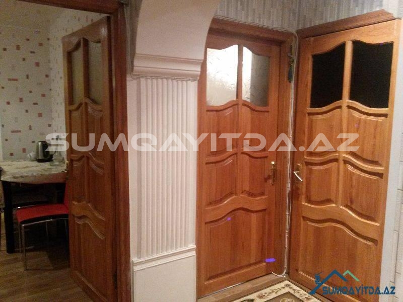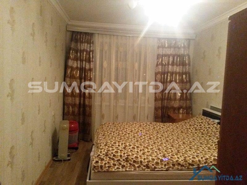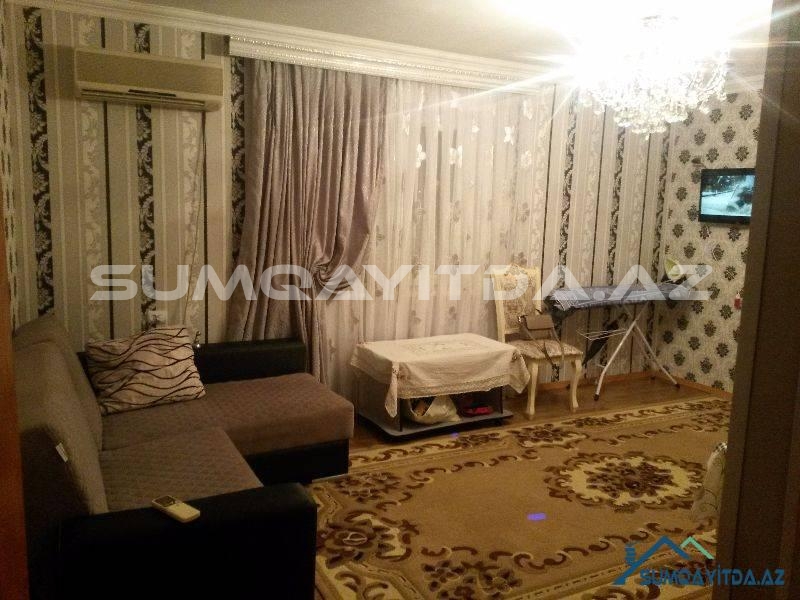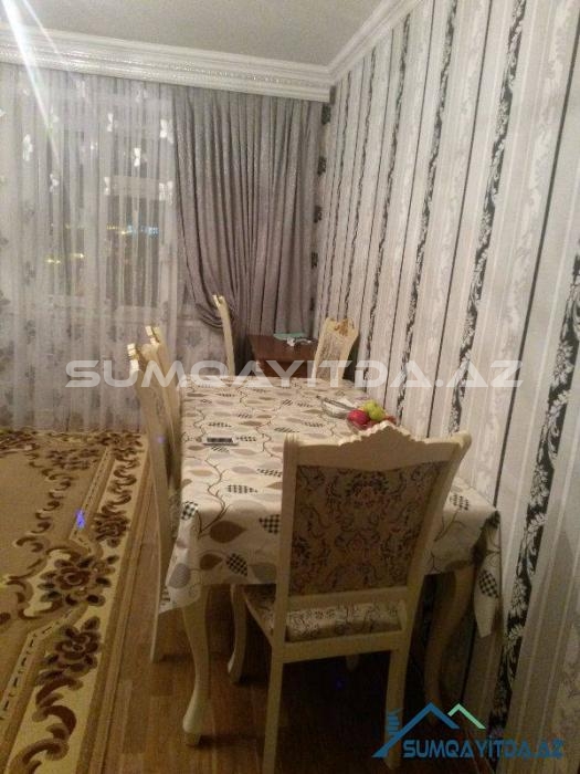 Ev Şəhərin mərkəzində yerləşib. Bu bir bloklu geniş proyektli 9 mərtəbədən Sumqayit şəhərində 5-6 dənədir. Lifti təzədir. Suyu daimidir. Evdə heç bir təmirə ehtiyac yoxdur. Evin hər iki tərəfi parkdır. Bir Tərəfi Tarix Muzeyinin qabağındakı parka baxır, digər tərəfi isə Heydər Əliyev Prospektindəki parka. Ticarət mərkəzləri, kurslar, məktəb, baxça, poliklinika, xəstəxana hamısı evin yanındadır. Otaqları geniş və hündürdür. onaq otağı 24 kvadrat metrdən böyükdür. Mətbəxi çox genişdir.