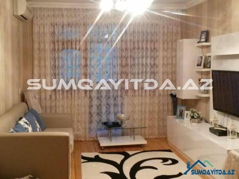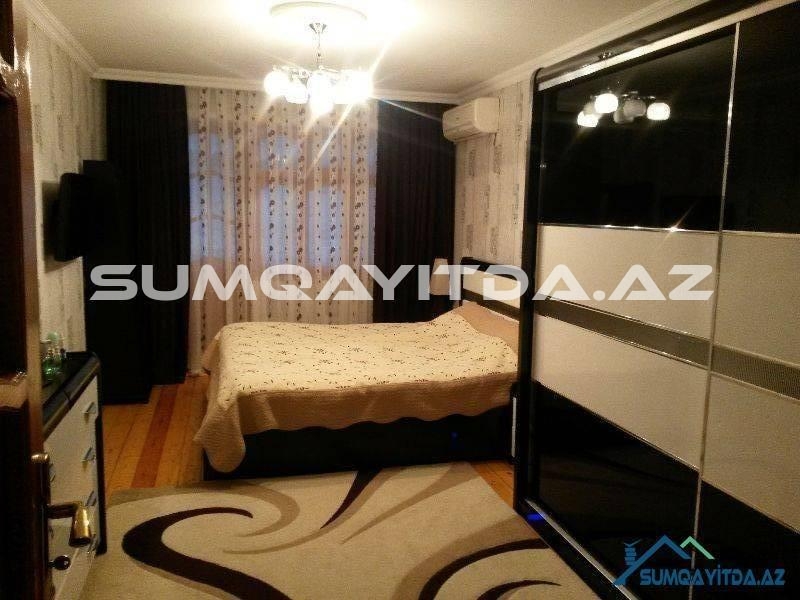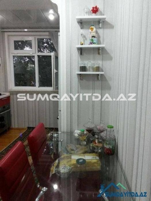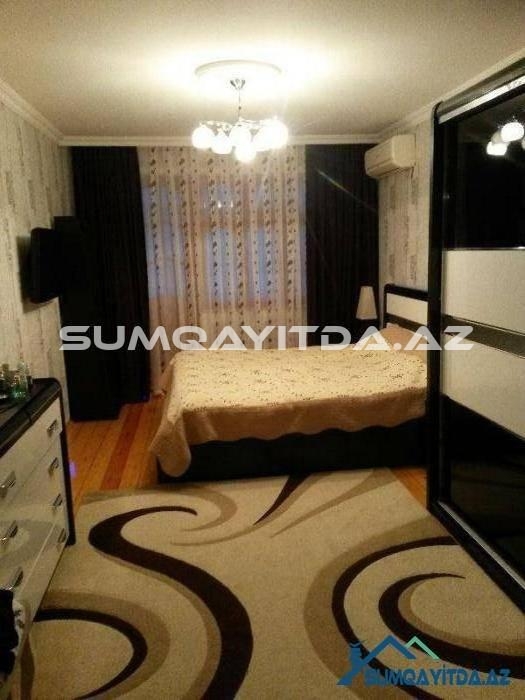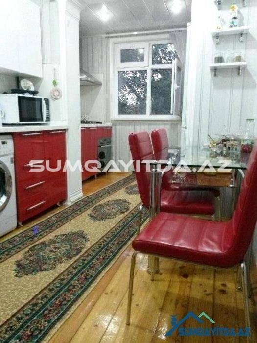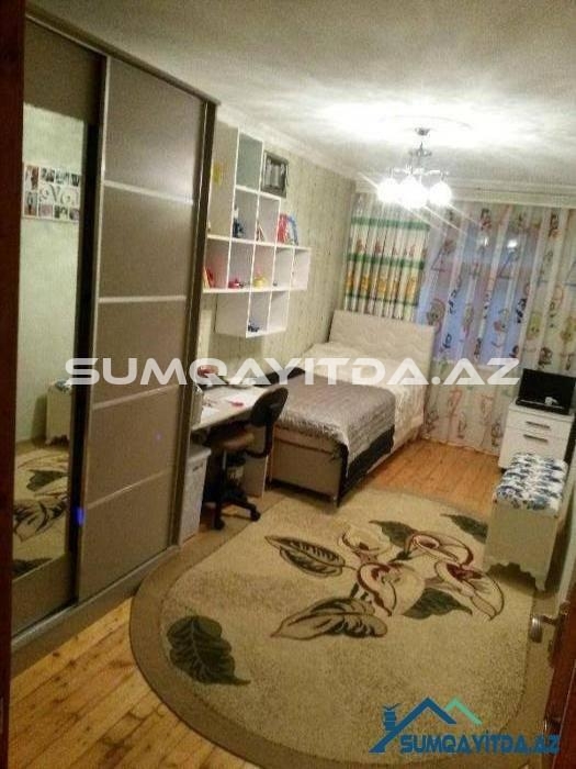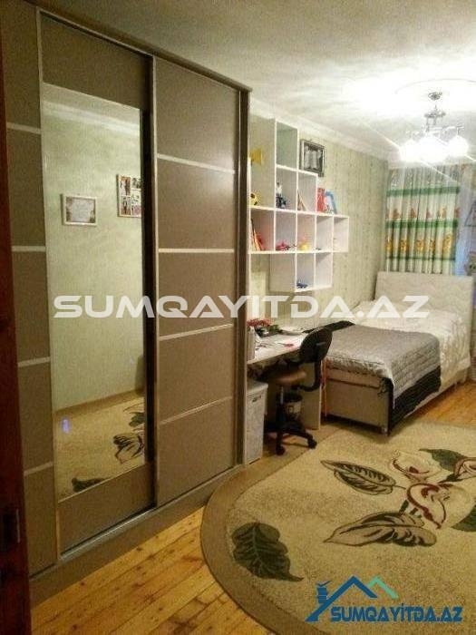 Ev Sumqayit seher Heydər Eliyev Prospektinde, Tarix Muzeyinin, poctun, parkin yaninda yerləşib. Heyetinde masinlar ucun dayanacaqda var.Otaqlari her biri 5 metr 60 sm dir.eni ise 3 metr 10 sm dir.metbexi senedle artirilib 5 metrdir.artirilan yer texniki pasporta daxil edilib..Metbexinde ustu mermerle yığılan, qapilari mdf mebel var.evin heyetinde mekteb, baxca, park,moyka,ticaret merkezleri, optovoylar yerlesir.iki balkonu var.