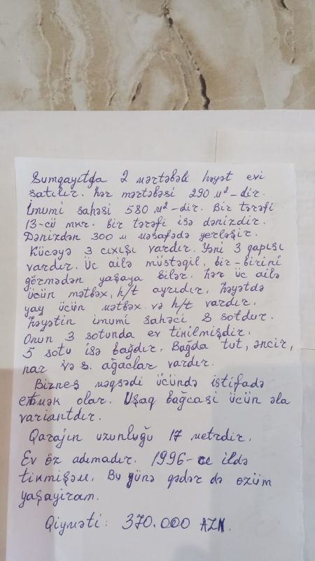 Şəxs : Rasim (vasitəçi/rieltor)